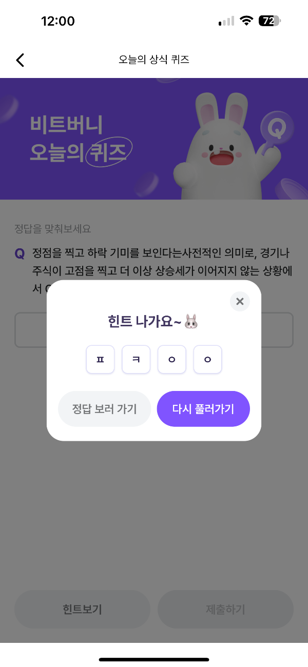 비트 버니 오늘의 퀴즈 정답 확인